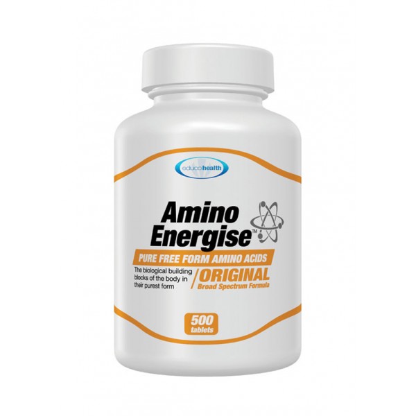 Amino Energise, For firm Muscle Tissue and Energy, is made of pure free-form amino acids, the basic building blocks of protein. They also directly feed the nervous system and brain. They help make any protein you eat complete and more usable by the body and also help create and retain firm tissue. Taken with meals they can help you gain energy, firm up and boost concentration. 5 tablets provide the same protein as one egg.